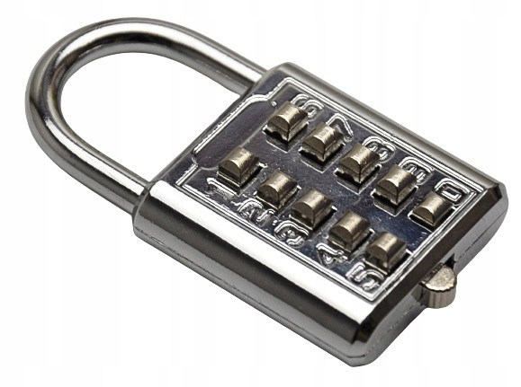 To kłódka najczęściej otwierana kodem liczbowym we właściwej kombinacji. Miejsce, gdzie należy wpisywać rozwiązanie zwykle oznaczone jest wyraźną linią lub charakterystycznym wybrzuszeniem.